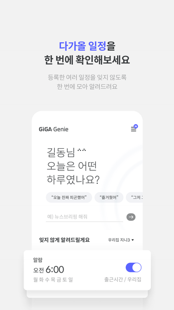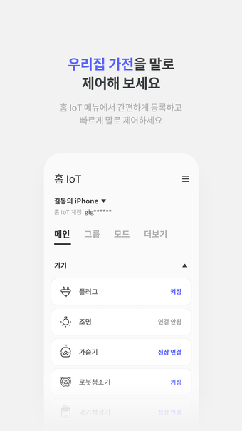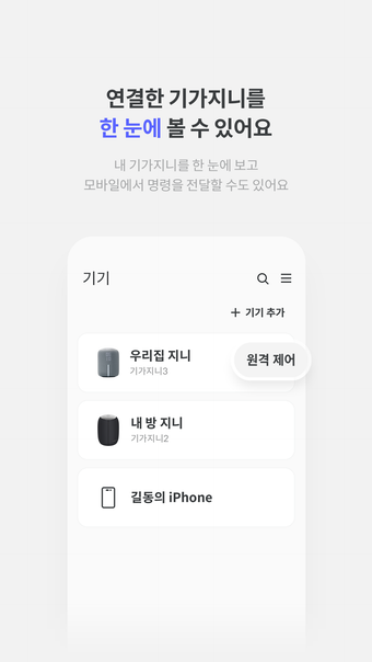 KT جيجاجيني هو تطبيق يعمل كتطبيق مخصص لإعدادات "خدمة الذكاء الاصطناعي KT جيجاجيني". يمكنك من خلاله توصيل وإدارة مختلف أجهزة تشكيلة جهاز جيجاجيني. من خلال التطبيق، يمكنك تجربة خدمة جيجاجيني المتطورة بسهولة.